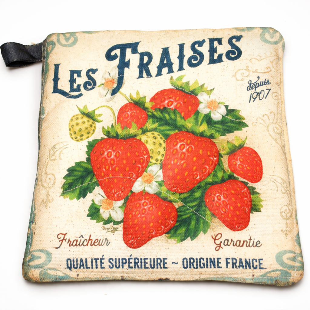 | Maniques « Fruits » (paire) – toile 100% coton | 20€ |